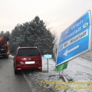 Der Wintereinbruch dieser Tage fördert das, was in den letzten warmen Wochen ausblieb: rutschige Fahrbahnverhältnisse. Am Montag um kurz nach 15 Uhr rutschte ein Fahrzeug gegen das Hinweisschild auf der Neunkirchnerstraße (B17) bei der Gabelung Richtung Auffahrt Wien.