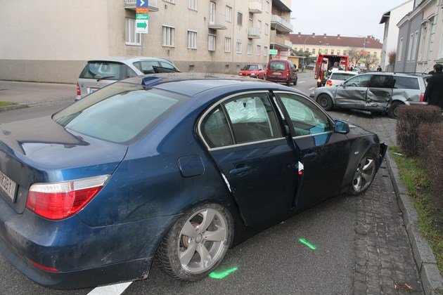 Aus bislang unbekannter Ursache kam der BMW, welcher in Fahrtrichtung Fischapark unterwegs war, ins Schleudern und touchierte mit einem Hinterreifen den Randstein. Der BMW wurde dabei – laut einem Passanten – auf die andere Fahrspur geschleudert, wo dieser einen VW Passat traf und diesen gegen eine Hauseinfahrt drückte. Bei beiden Fahrzeugen entstand Sachschaden. Die Beifahrerin des VW Passat musste mit Verletzungen unbestimmten Grades ins Krankenhaus gebracht werden.