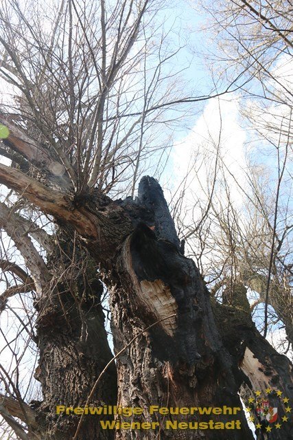 Um kurz vor 13 Uhr wurde dann noch ein glosender Baum gemeldet. Auch hier fachte der auffrischende Wind den Glimmbrand des Vortages wieder an. Durch die Gefahr von herabfallenden Ästen, wurde der Baum erneut gründlich mit Löschwasser beaufschlagt. Eine Kontrolle des Baumes wird im Laufe des späteren Nachmittags erneut durchgeführt.