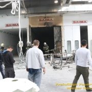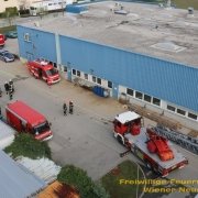 In einer der drei Lackierboxen des Flugzeugherstellers brach aus bislang unbekannter Ursache ein Brand aus, der sich über die Luftfilteranlage auszubreiten drohte. Rasch wurden drei Atemschutztrupps mit den Löscharbeiten betraut, während immer mehr Feuerwehrfahrzeuge eintrafen. Brandrat Pfeiffer übernahm die Koordination des Innenangriffs während VI Harald Sander die nachrückenden Einsatzkräfte außen koordinierte.