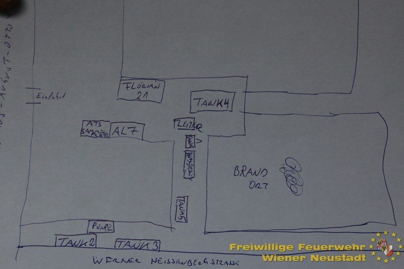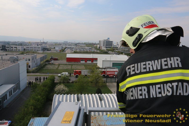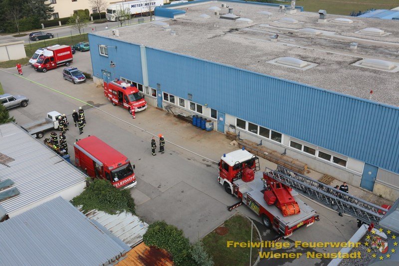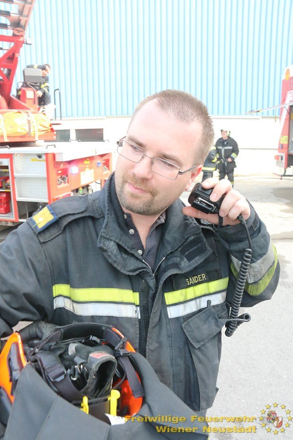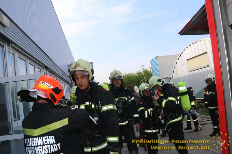 Als der Brand ausbrach versuchten Mitarbeiter des Unternehmens noch den Brand mit Kleinlöschgeräten zu bekämpfen, erkannten aber rasch, dass hier die Feuerwehr helfen muss. Die Feuerwehr Wiener Neustadt wurde um kurz nach halb 9 Uhr vormittags zu einem Brandeinsatz in der Diamond Aircraft gerufen. Der erste Kommandant Stellvertreter und Einsatzleiter BR Christian Pfeiffer sah bei der Anfahrt die enorme Rauchsäule und gab sofort die höchste Alarmstufe. Mit Sirene wurden weitere Einsatzkräfte aus dem Stadtgebiet nachalarmiert.
