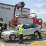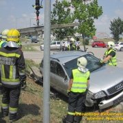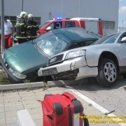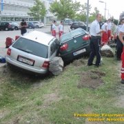 Um 13:35 am Freitag, 18.07.14, meldete 144 Notruf Niederösterreich der Bezirksalarmzentrale Wiener Neustadt einen schweren Verkehrsunfall in der Civitas Nova. Laut erstem Meldebild war von zwei eingeklemmten Personen auszugehen. Daraufhin wurde eine Vielzahl an Einsatzkräften von Feuerwehr und Rotem Kreuz zu der Unfallstelle alarmiert. Die Feuerwehr rückte mit vier Fahrzeugen und 16 Mann aus.