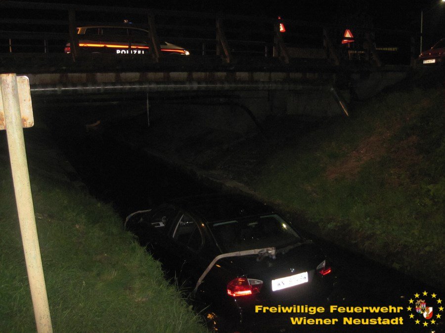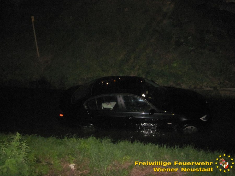 Bei dem Versuch, aus einem Parkplatz in der Stadionstraße auszuparken, geriet die Lenkerin nach eigener Angabe in den abschüssigen Böschungsbereich. Der Versuch, das Fahrzeug zu bremsen, scheiterte jedoch an dem feuchten Untergrund. In weiterer Folge rutschte der BMW weiter ab und kam dann im Bachbett der Warmen Fischa unter einer Brücke zum Stehen.