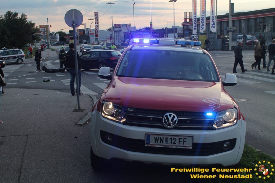 Im Kreuzungsbereich Pottendorfer Straße/ Stadionstraße kollidierte gegen 18:15 ein 26-jähriger Winzendorfer mit seinem Pkw aus unbekannter Ursache mit einem Motorradfahrer aus dem Bezirk Eisenstadt- Umgebung. Der Burgenländer wurde dabei so schwer verletzt, dass er, nach der Erstversorgung durch den Notarzt, mit dem Christophorus- Hubschrauber ins Landesklinikum Wiener Neustadt geflogen werden musste.