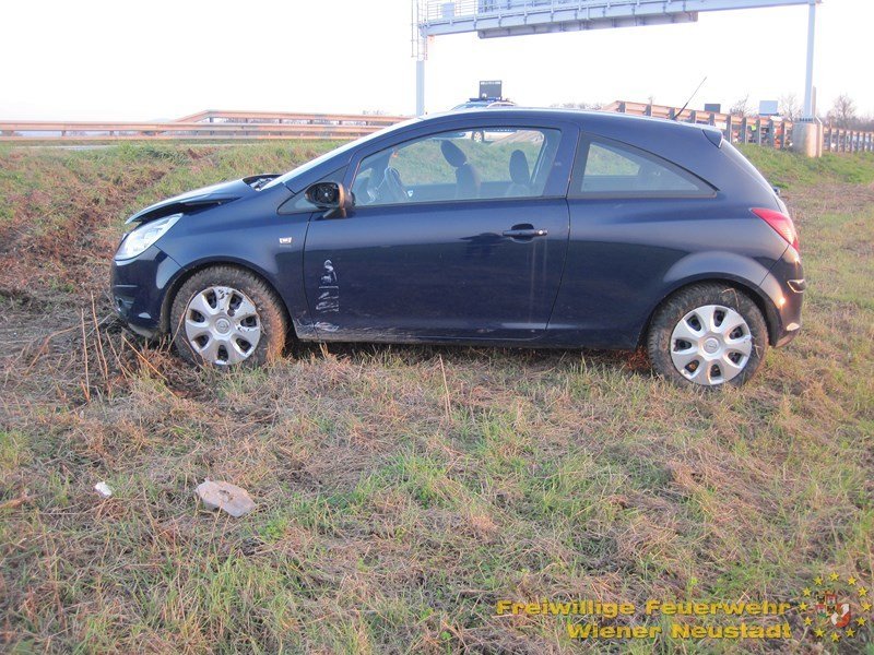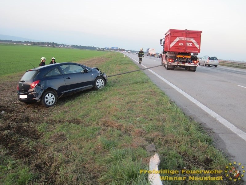 Einen „Arbeitstag“ nach dem Unfall auf der A2, nämlich um 15:59 Uhr, wurde die Feuerwehr erneut auf die Südautobahn gerufen. Ein Pkw stürzte über die Böschung. Dieser wurde durch die Feuerwehr geborgen, zum Parkplatz auf der B17 verbracht und dort gesichert abgestellt.