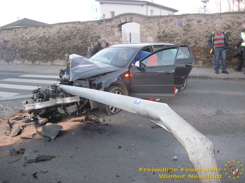 In der Günserstraße rammte ein aus Neunkirchen stammender Mann mit seinem Audi A3 eine Laterne. Durch die Wucht des Aufpralls wurde der Motorblock aus dem Fahrzeug gerissen. Die Feuerwehr hat ausgetretene Flüssigkeiten gebunden und die Verkehrswege freigemacht. Bei dem Unfall wurde niemand verletzt.