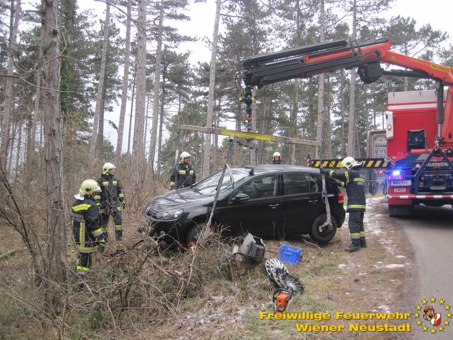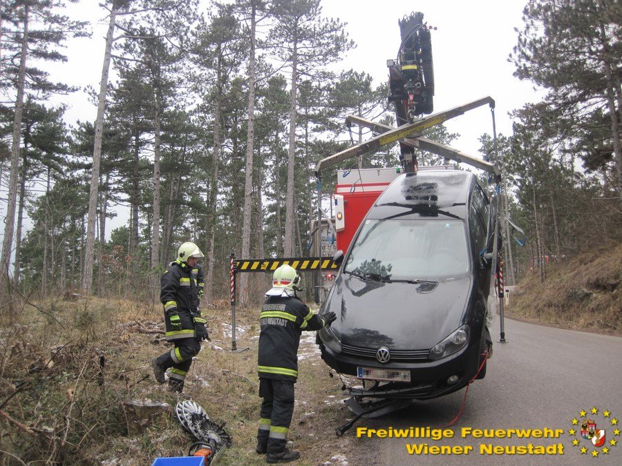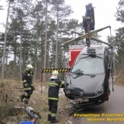 Zur Unterstützung der Feuerwehr Bad Fischau rückte die Feuerwehr Wiener Neustadt heute Vormittag aus. Nach einem Verkehrsunfall auf der Dreistetter Straße saß der betroffene Pkw auf einem Baumstumpf auf und musste desshalb zurück auf die Straße gehoben werden. Die FF Wiener Neustadt rückte mit dem schweren Rüstfahrzeug aus und unterstützte damit die Kameraden aus Bad Fischau. Nach einer Stunde war der Einsatz beendet.