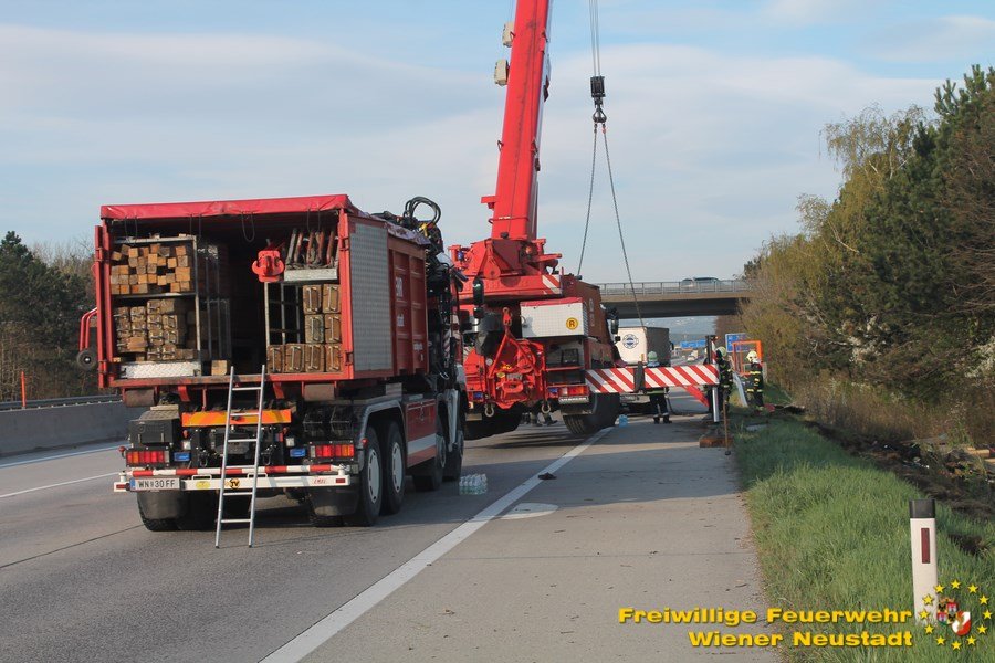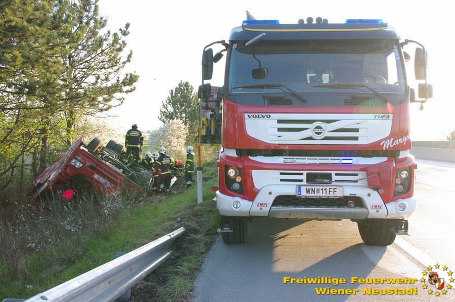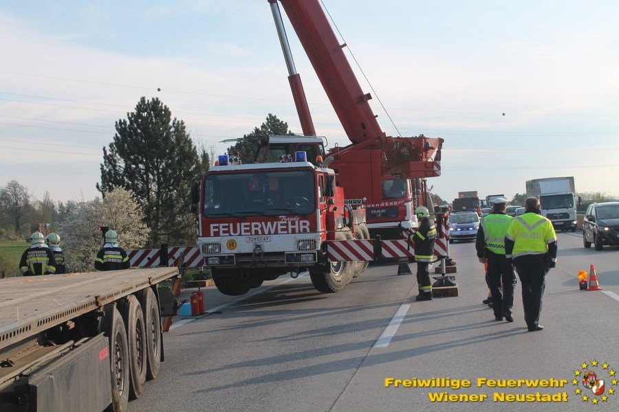 Da nach den ersten Meldungen von einer eingeklemmten Person ausgegangen werden musste, wurden die Mitglieder der Freiwilligen Feuerwehr Wiener Neustadt, um kurz vor sechs Uhr, zu einer Menschenrettung alarmiert. Innerhalb kürzester Zeit rückten sechs Fahrzeuge auf die Südautobahn Fahrtrichtung Graz aus.