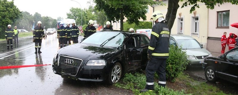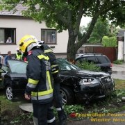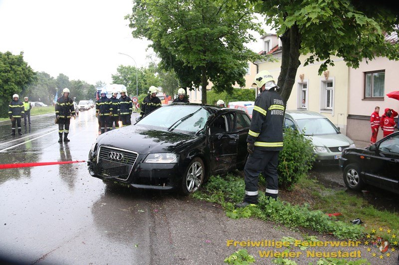 Aus bislang unbekannter Ursache verlor ein burgenländischer Fahrer eines Audi A3 die Herrschaft über sein Fahrzeug. Ein Baum auf der Neudörflerstraße, kurz vor der Auffahrt zur S4, stoppte ein Baum den Audi. Der Fahrer kam mit dem Schrecken davon.