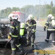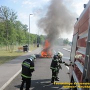 Am Autobahnrastplatz Wiener Neustadt in Fahrtrichtung Graz wurde ein Fahrzeugbrand gemeldet. Gegen 08:45 rückten zwei Fahrzeuge auf die Südautobahn aus. Vor Ort eingetroffen stand der Saab bereits in Vollbrand. Unter umluftunabhängigem Atemschutz wurde das Feuer mit einem Rohr abgelöscht. Nach rund einer Stunde konnte die Feuerwehr wieder einrücken.
