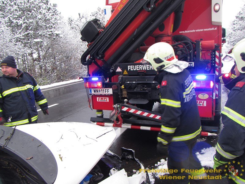 Der Fahrer sprach von Glätte, die der erste Schnee an diesem Morgen mit sich brachte. Die Feuerwehr Wiener Neustadt zog das Fahrzeug aus dem Graben und stellte es gesichert bis zum Eintreffen eines privaten Abschleppunternehmens ab. Für die Dauer der Bergung war die erste Spur gesperrt. Die Feuerwehr stand – aufgrund der notwendigen Absperrmaßnahmen – eine knappe Stunde im Einsatz.