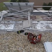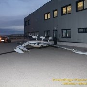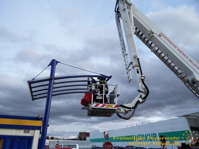 Photvoltaik-Panele wurden durch den Sturm losgerissen. In einer Reihenhaussiedlung lösten sich die Saumbleche an den Dächern einer ganzen Häuserreihe. Durch die zeitweise nachlassenden Böen konnte die Sperre der Jet-Tankstelle wieder aufgehoben werden, nachdem die Feuerwehr mit dem Hubrettungsgerät das Blech entfernen konnte, welches den Kundenverkehr gefährdete.
