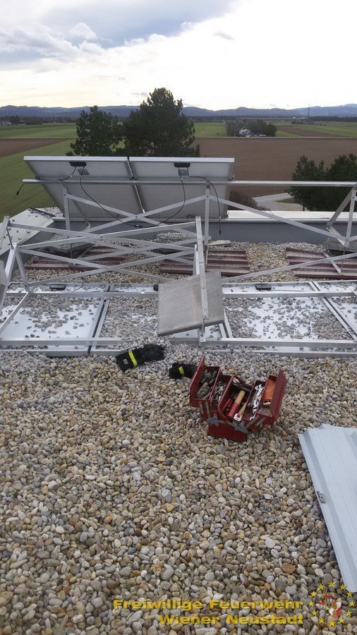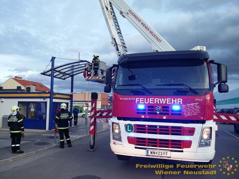 Zwischen den durch den Sturm ausgelösten Einsätzen rückte die Feuerwehr Wiener Neustadt auch aus um eine vom Kind ausgesperrte Mutter vom Balkon zu befreien und die gekippte Balkontüre zu öffnen.