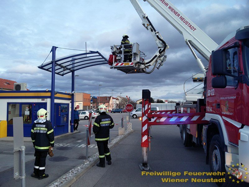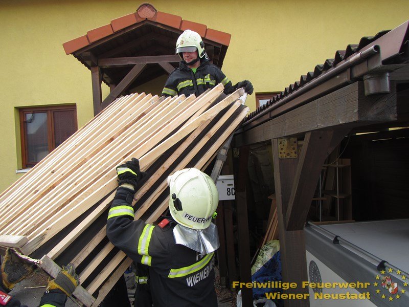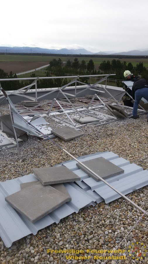 Um 3:15 Uhr begann der Einsatzreigen für die Feuerwehr Wiener Neustadt mit einem Brandalarm im Landespensionistenheim. Ein Türsteuergerät brannte. Die Nachtbereitschaft konnte das Feuer rasch löschen. Kurz darauf trafen die ersten Notrufe über Sturmschäden der Nacht in der BAZ Wiener Neustadt ein.