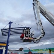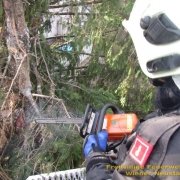Wieder mussten Bäume, die sich nun gefährlich neigten umgeschnitten bzw. gekürzt werden, um größeren Schaden abzuwenden. Durch die anhaltenden Böen ist es immer noch nicht möglich, Dächer zu betreten, weshalb weiterhin großflächig rund um Gebäude mit losen Dachteilen abgesperrt werden muss.