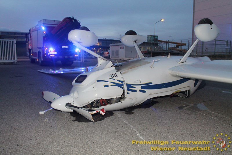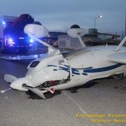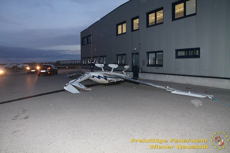 Ein abgestelltes Kleinflugzeug wurde am Flugfeld Ost von den Windböen von der Parkposition in die Luft gewirbelt, touchierte das Dach des Verwaltungsgebäudes und kam verkehrt in der Zufahrt zum Flugfeld liegen. Ein Aufstellen des Flugzeuges wäre aufgrund des Sturms nicht möglich gewesen, weshalb die Feuerwehrmitglieder das Flugzeug am Boden nieder zurrten.