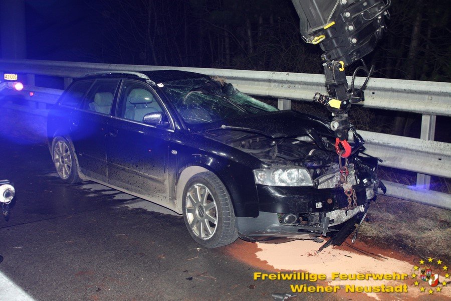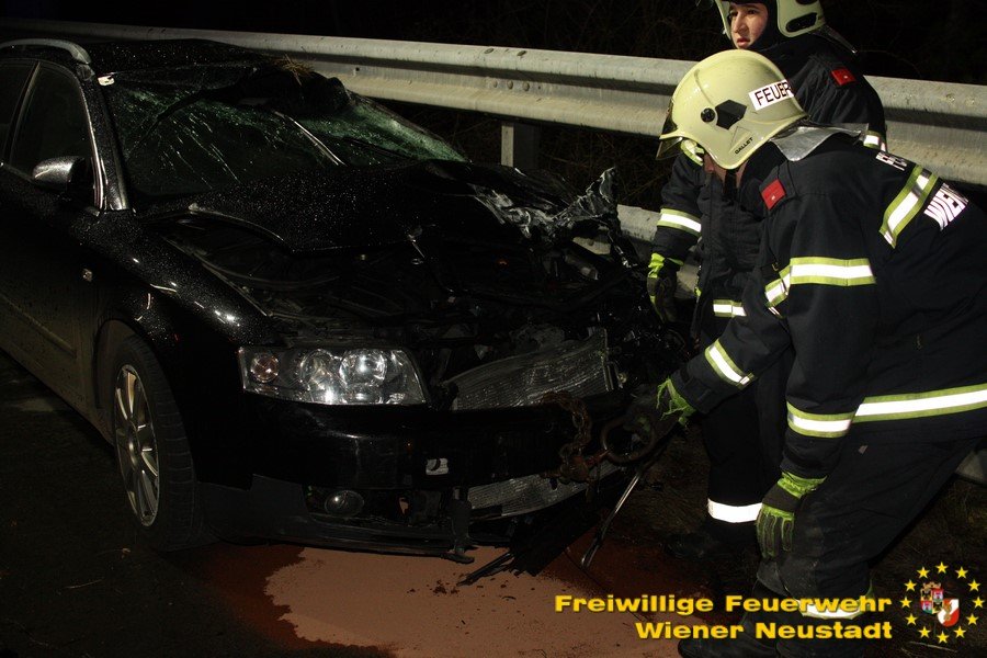 Die Feuerwehr Wiener Neustadt wurde um kurz nach 05.00 Uhr von der BAZ Neunkirchen über den Unfall verständigt. Kurz nach der Alarmierung rückten zwei Fahrzeuge auf die A2 aus. Vor Ort wurde die Unfallstelle abgesichert und die Fahrzeugbergung durchgeführt. Außerdem mussten ausgeflossene Betriebsmittel gebunden werden. Das Unfallfahrzeug wurde von der Autobahn verbracht und anschließend gesichert abgestellt.