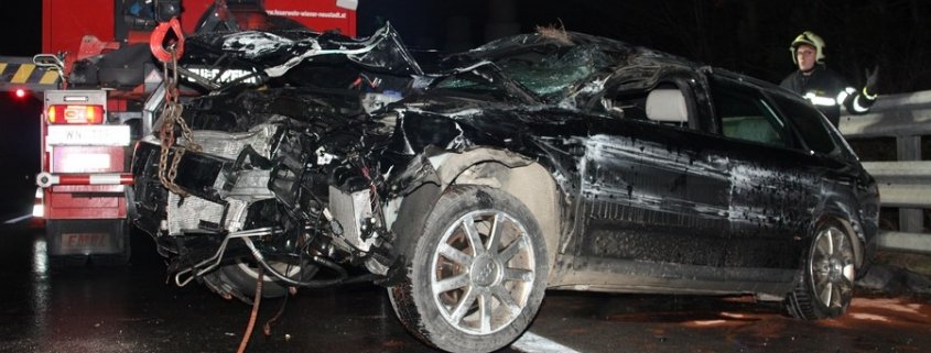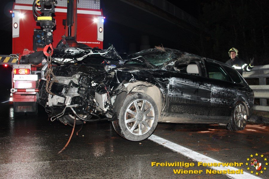 Am frühen Samstagmorgen (31.01.) kam es auf der A2 zu einem schweren Verkehrsunfall. Ein Pkw- Lenker verlor aus unbekannter Ursache die Kontrolle über seinen Audi. Das Fahrzeug touchierte mehrmal die Leitschiene, bevor es sich überschlug und gegen die Fahrtrichtung am Pannenstreifen liegen blieb. Der Lenker aus dem Bezirk Neunkirchen kam glücklicherweise unverletzt davon. Er konnte das Auto selbstständig verlassen.