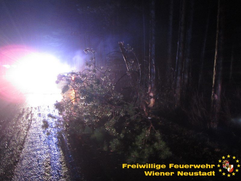 Die Feuerwehr Wiener Neustadt sicherte die Unfallstelle ab und führte die Fahrzeugbergung durch. Die Kameraden aus Schwarzau beseitigten den umgestürzten Baum und reinigten die Straße.