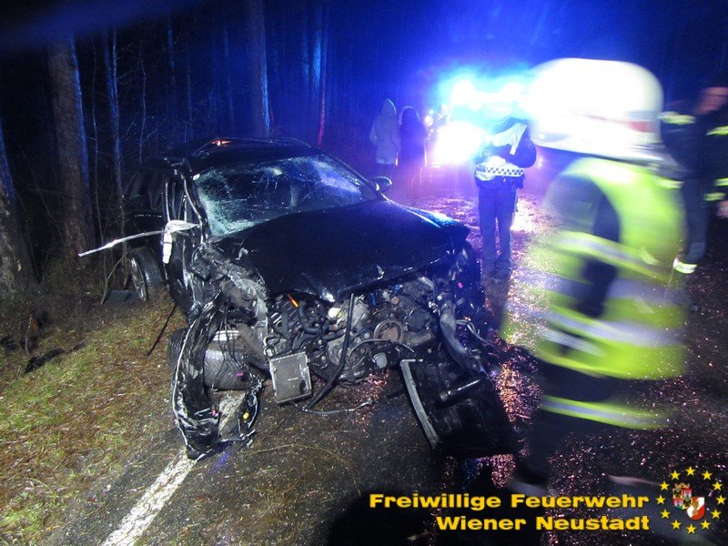 Gegen 21.25 Uhr meldete ein Autolenker einen schweren Verkehrsunfall am Triftweg im Föhrenwald. Den Angaben zufolge sei ein Pkw in den Wald geschleudert worden. Da anfangs nichts näheres bekannt war, wurden auch Exekutive und Notarzt mitalarmiert. Auch die Freiwillige Feuerwehr Schwarzau am Steinfeld war im Einsatz.