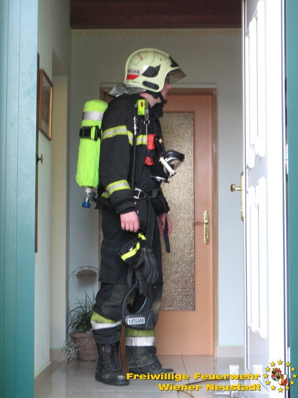 Vor Ort ging ein Trupp unter Umluft unabhängigen Atemschutz ins bereits verrauchte Haus vor. Der brennende Herd konnte sehr rasch abgelöscht werden.
