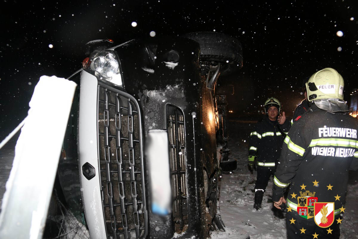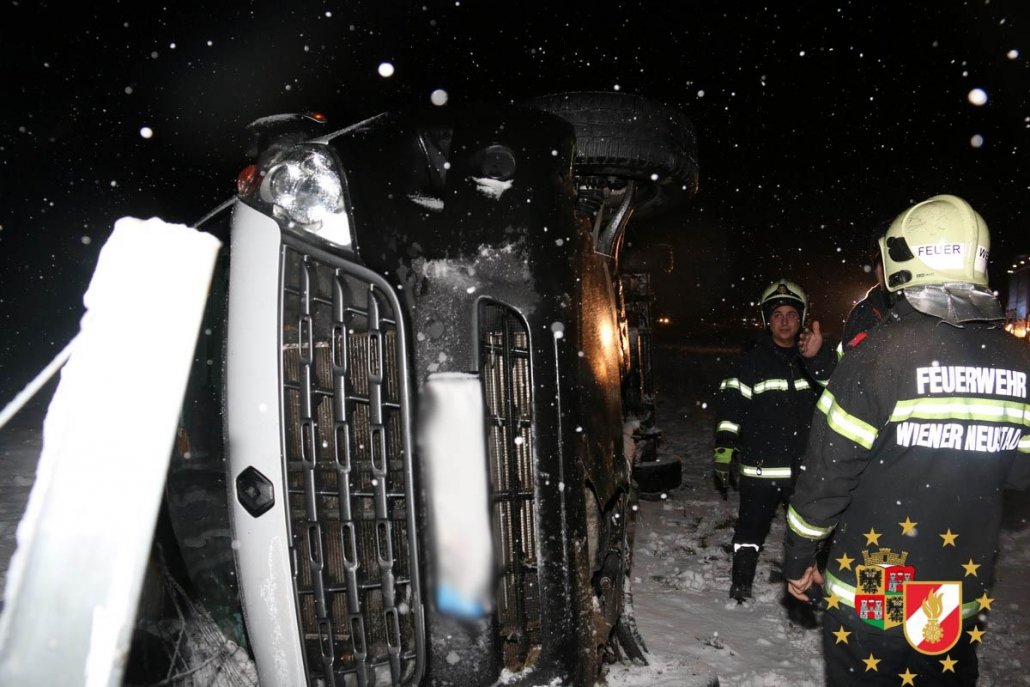 Aus bislang unbekannter Ursache kam ein Klein-Lkw um kurz vor 3 Uhr morgens am 16. März von der A2 Fahrtrichtung Graz kurz nach Wiener Neustadt von der Fahrbahn ab. Der Kastenwagen blieb auf der Seite liegen. Der Fahrer blieb unverletzt.