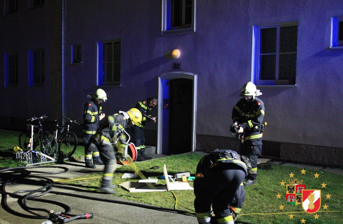 Im zweiten Stock eines Mehrparteienwohnhauses brannte ein Zimmer. Da die Rauchbelastung enorm war und auch die Gegebenheiten des Belüftungssystem nicht bekannt waren, wurde vorsorglich das Wohnhaus evakuiert und die Nachbarn ins Freie gebracht.