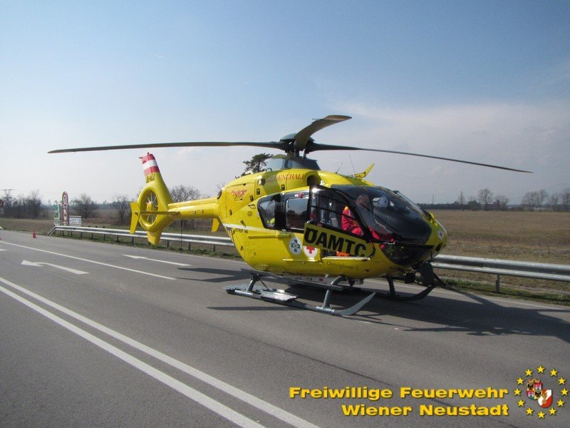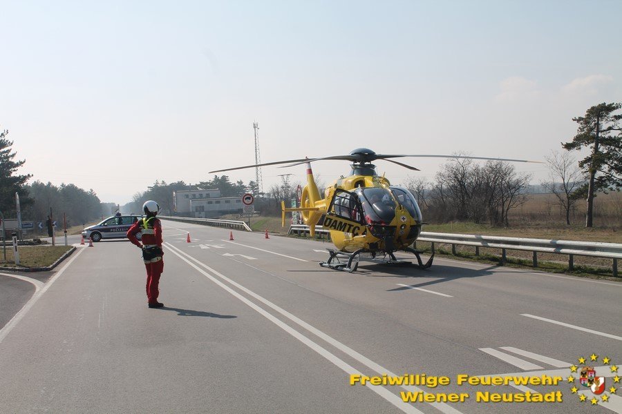 Vor Ort eingetroffen wurden die beiden Insassen über die Frontscheibe des Lkws aus der Fahrerkabine befreit und an den Rettungsdienst übergeben. Die Beifahrerin erlitt so schwere Verletzungen, dass sie noch an der Unfallstelle vom Notarzt, versorgt und mit dem Hubschrauber ins Krankenhaus Wiener Neustadt geflogen werden musste. Der Lenker wurde vom Roten Kreuz ins Spital gebracht.