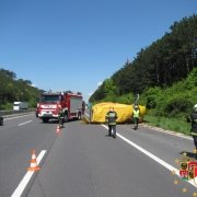 Zu einem Verkehrsunfall auf der Südautobahn in Fahrtrichtung Wien kurz vor der Abfahrt Wöllersdorf wurde die Feuerwehr Wiener Neustadt kurz nach Mittag am 6. Mai 2016 gerufen. Der Fahrer eines Klein-Lkws verlor aus noch ungeklärter Ursache die Herrschaft über sein Fahrzeug, kreuzte die Autobahn von der dritten Fahrspur kommend im spitzen Winkel und geriet auf die Böschung. Die Wucht des Aufpralls drehte das Fahrzeug und es kam auf der Seite zum Liegen.