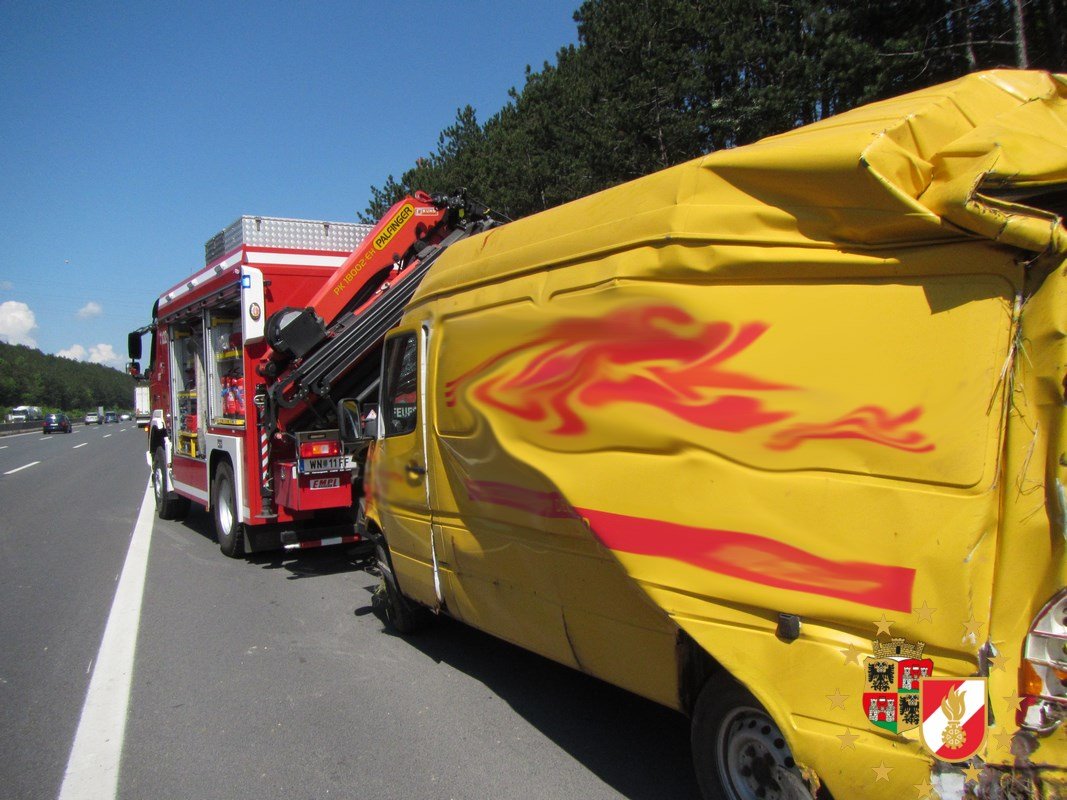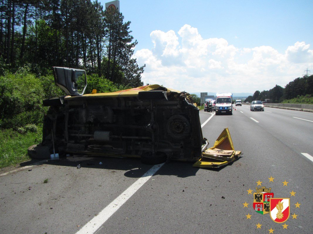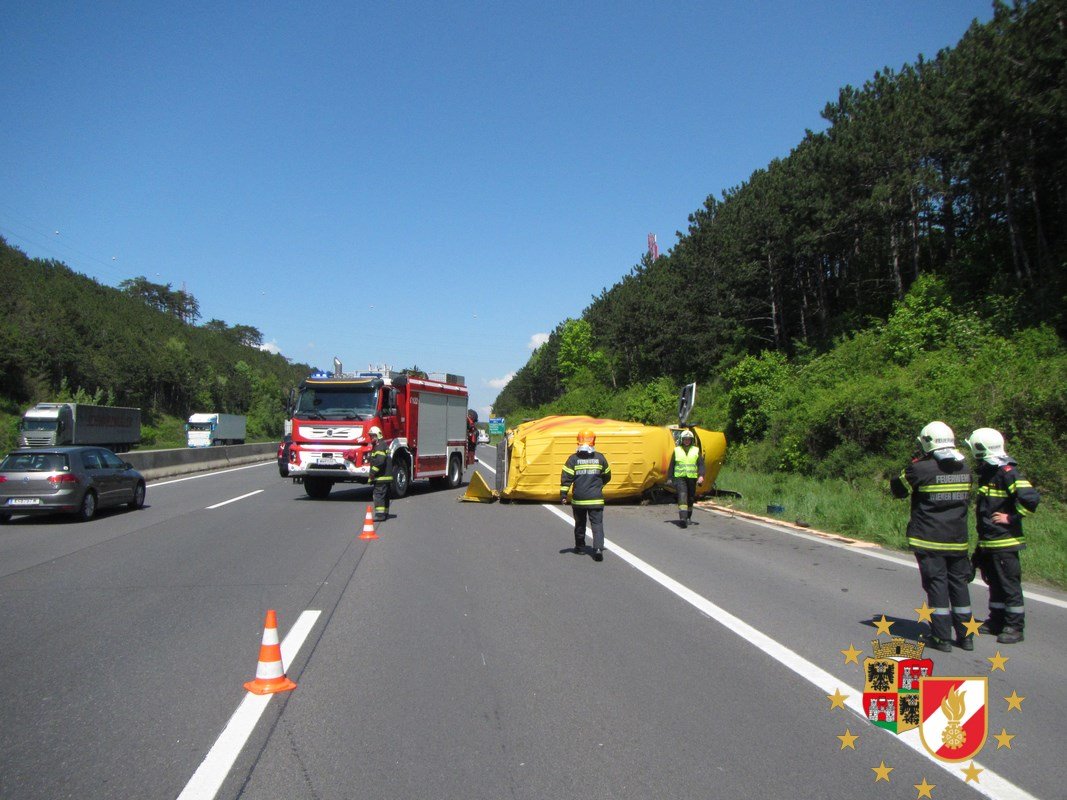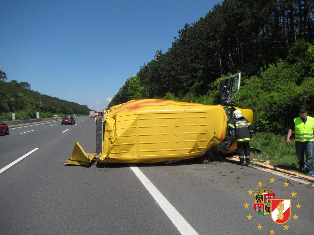 Zu einem Verkehrsunfall auf der Südautobahn in Fahrtrichtung Wien kurz vor der Abfahrt Wöllersdorf wurde die Feuerwehr Wiener Neustadt kurz nach Mittag am 6. Mai 2016 gerufen. Der Fahrer eines Klein-Lkws verlor aus noch ungeklärter Ursache die Herrschaft über sein Fahrzeug, kreuzte die Autobahn von der dritten Fahrspur kommend im spitzen Winkel und geriet auf die Böschung. Die Wucht des Aufpralls drehte das Fahrzeug und es kam auf der Seite zum Liegen.