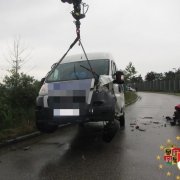 Mittels schwerem Rüstfahrzeug wurden die beiden Fahrzeuge auf die Seite gestellt. Danach konnten die ausgeflossenen Betriebsmittel gebunden und die Straße gesäubert werden.