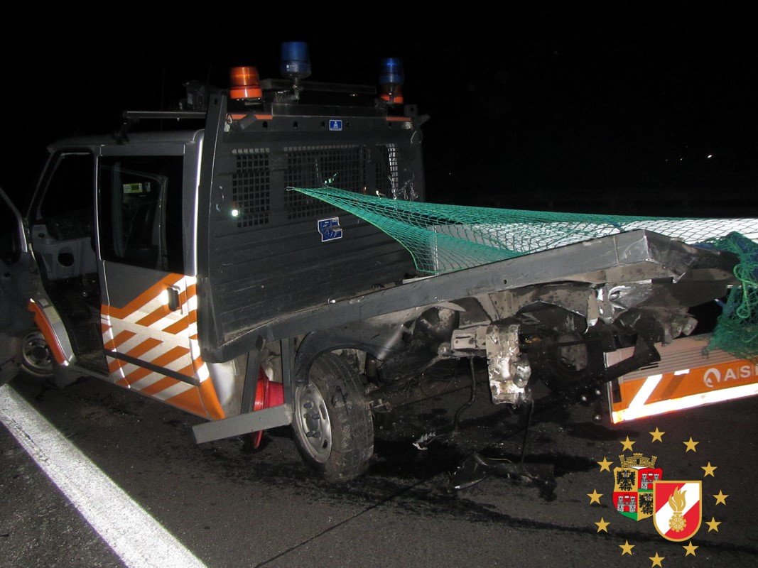 Zweimal wurde die Feuerwehr Wiener Neustadt in der Nacht zum 5. Juni auf die A2 Südautobahn, Fahrtrichtung Wien kurz vor der Raststation Föhrenberg, gerufen. Beim ersten Einsatz wurde ein Unfall auf der dritten Spur von einem nachkommenden Fahrer übersehen. Der zweite Unfall ereignete sich an exakt der selben Stelle, wo ein Fahrzeuglenker auf ein Pritschenfahrzeug der ASFINAG auffuhr, während diese die ersten zwei Fahrspuren für die Reinigungsarbeiten sperrte.