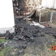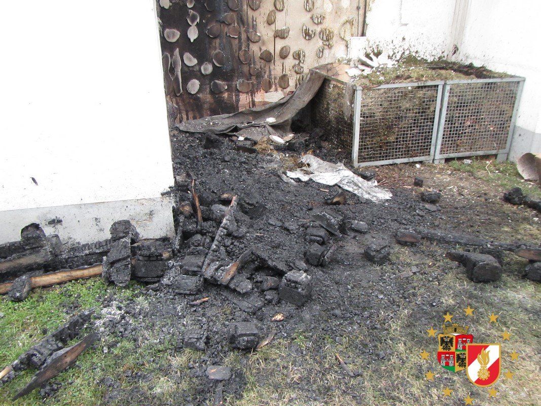 Als die Feuerwehr am Objekt eintraf, schlugen die Flammen bereits vom Palettenstoß und dem brennenden Komposthaufen daneben auf die Fassade und das Dach über.