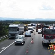 Ein Lkw touchierte aus bislang unbekannter Ursache die Mittelleitwand aus Beton und versperrte die Fahrbahn. Die Feuerwehr barg den Lkw und stellte diesen am Rastplatz Föhrenberg ab.