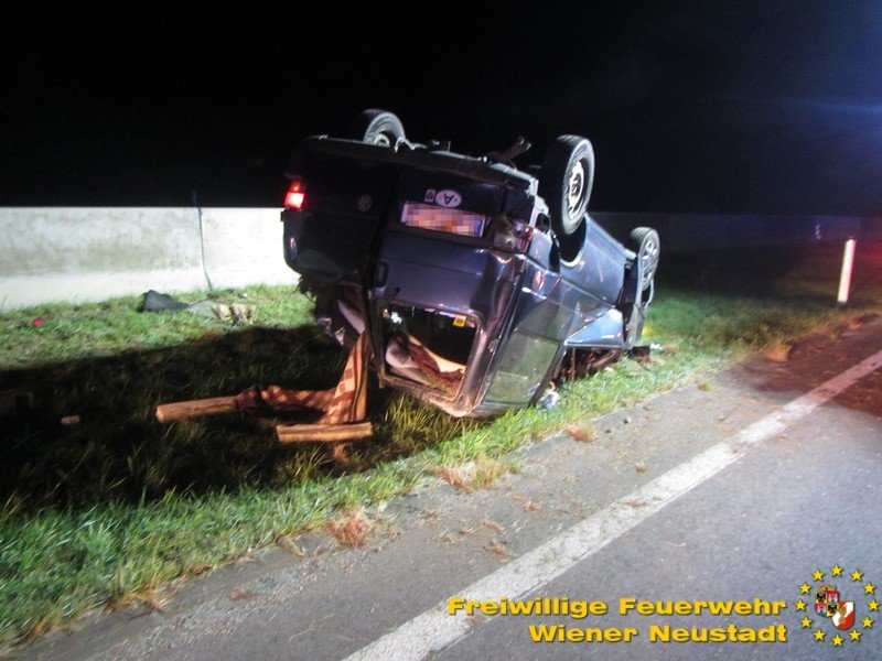 In der Nacht auf Haute, 30.09., überschlug sich gegen halb drei Uhr Morgens ein VW- Transporter auf der A2. Das Fahrzeug blieb auf dem Grünstreifen neben der Fahrbahn auf dem Dach liegen. Der Lenker aus Mattersburg wurde dabei unbestimmten Grades verletzt. Er wurde vom Rettungsdienst ins Krankenhaus verbracht. Die Feuerwehr führte die Bergung durch und stellte das Auto gesichert ab.