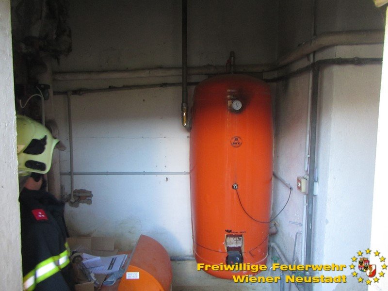 Bei der weiteren Erkundung stellten die Feuerwehrmänner fest, dass die Tür zum Heizraum vibrierte. Die Feuerwehr verschaffte sich mit einem Bolzenschneider Zugang zu dem Heizraum und stellte fest, dass der Heizkessel massiv überhitzt war. Sofort wurde eine Rückzugswarnung an alle Einsatzkräfte weitergegeben und eine Absperrung im Radius von 200 Metern befohlen. „Der Kessel war derartig überhitzt, dass akute Berstgefahr vom Kessel ausging“, erklärt der Kommandant der Freiwilligen Feuerwehr und Einsatzleiter Josef Bugnar.