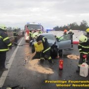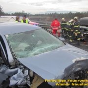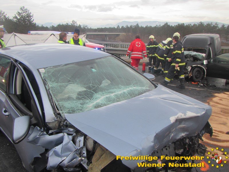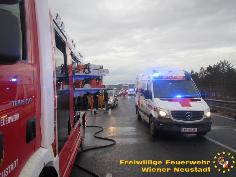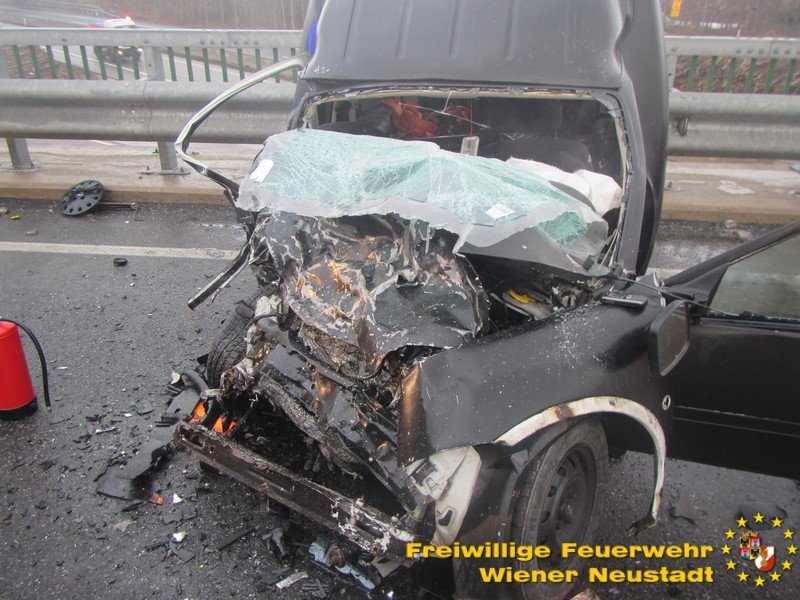 Von der Polizei kam die Meldung über einen schweren Verkehrsunfall am Knoten Wiener Neustadt. Gegen 07:30 Uhr kollidierten zwei Fahrzeuge auf einer Autobahnabfahrt frontal miteinander. Einer der Lenker wurde im Fahrzeug eingeklemmt, konnte jedoch von Beamten der Autobahnpolizei aus dem Wrack gezogen werden. Der Lenker des zweiten Fahrzeuges konnte ebenfalls befreit werden.
