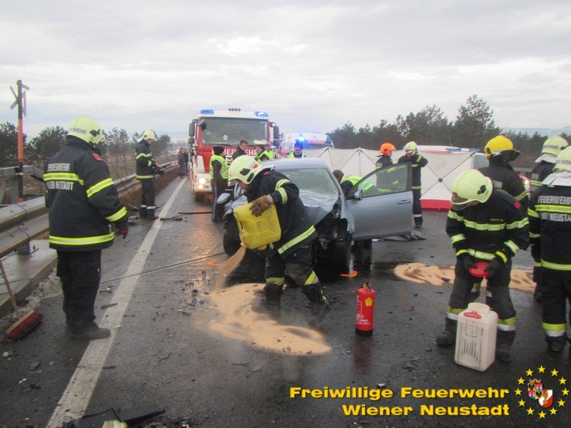 Die Feuerwehr Wiener Neustadt, welche während der Rettungsarbeiten unterstützend tätig war, führte nach den Rettungsarbeiten die Fahrzeugbergungen durch. Außerdem mussten ausgelaufende Betriebsmittel gebunden werden.