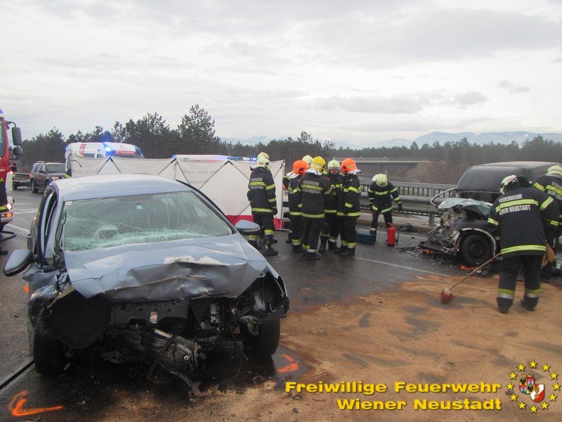 Einen Toten und einen Schwerverletzen forderte ein Frontalaufprall am Autobahnknoten Wiener Neustadt. Auf einer Rampe zur Abfahrt B17 kollidierten zwei  Pkws frontal. Während ein 41- jähriger aus dem Bezirk Mattersburg vor Ort verstarb, wurde ein 21- jähriger aus dem Bezirk Wiener Neustadt schwer verletzt ins Landesklinikum Wiener Neustadt gebracht.