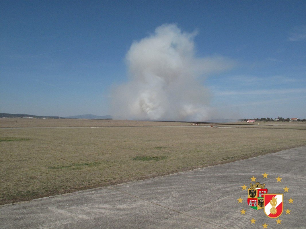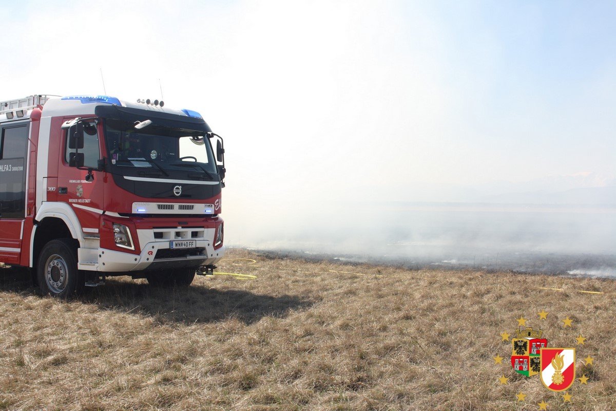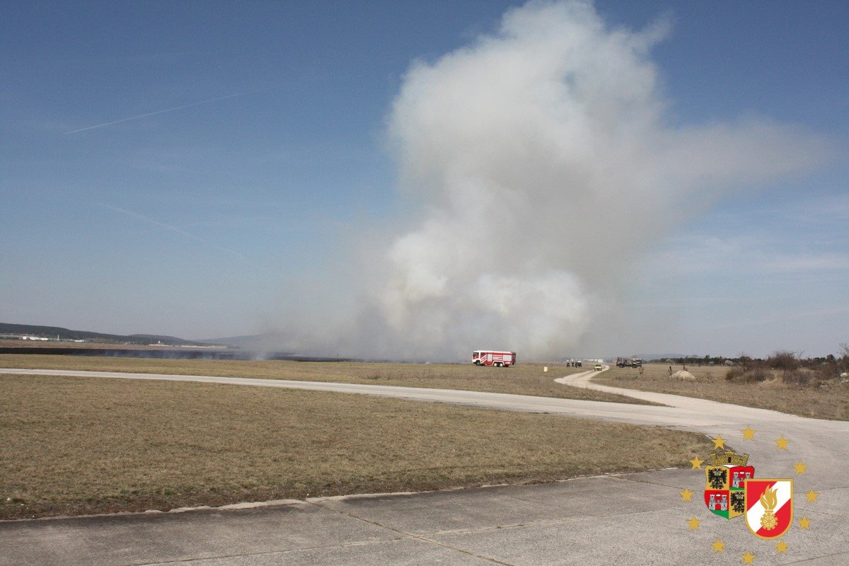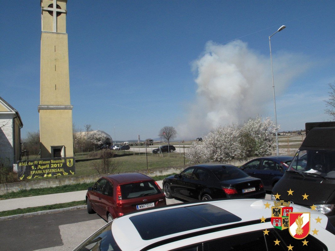Kurz nach 13 Uhr trafen mehrere Notrufe in der Bezirksalarmzentrale Wiener Neustadt ein. Eine riesige Rauchsäule stieg vom Flugfeldgürtel in Wiener Neustadt auf. Während dutzende Notrufe mit unklaren Angaben eintrafen, meldete sich die Flugfeldfeuerwehr des Österreichischen Bundesheeres: Ein Flurbrand am Flugfeld geriet durch den starken Wind außer Kontrolle.