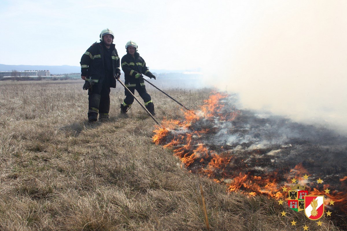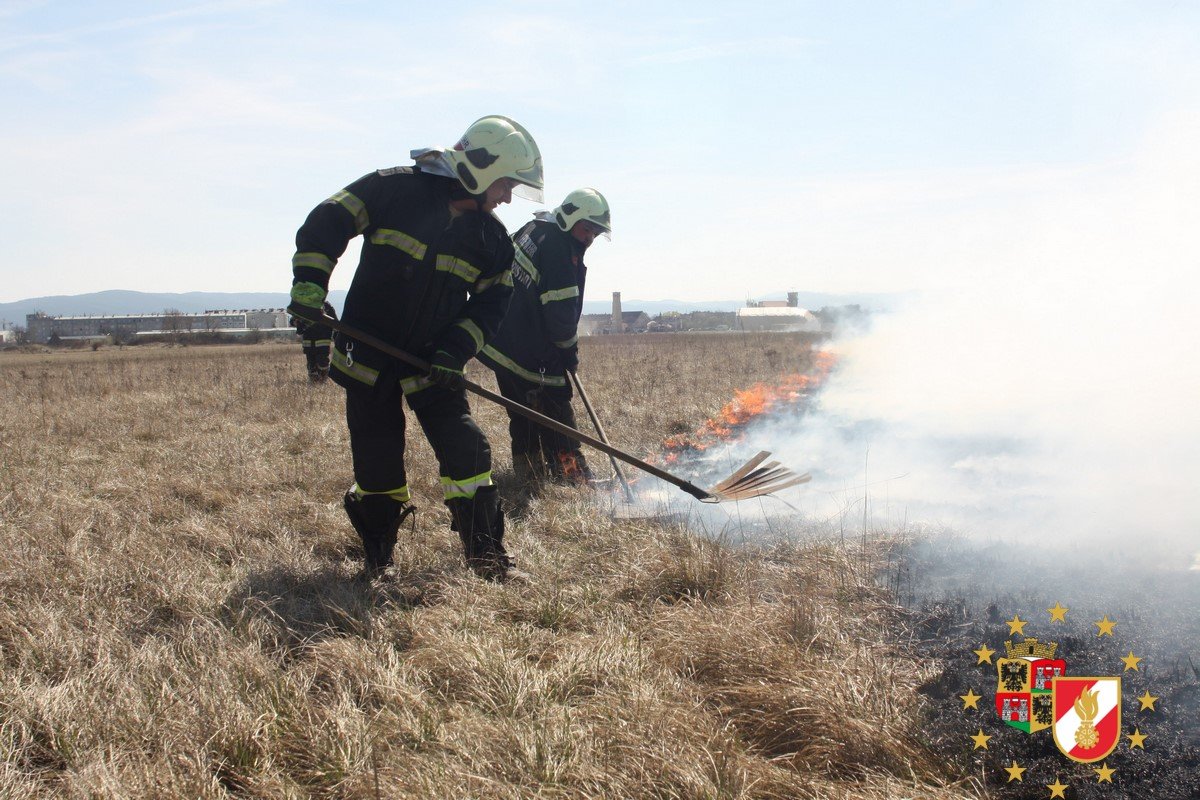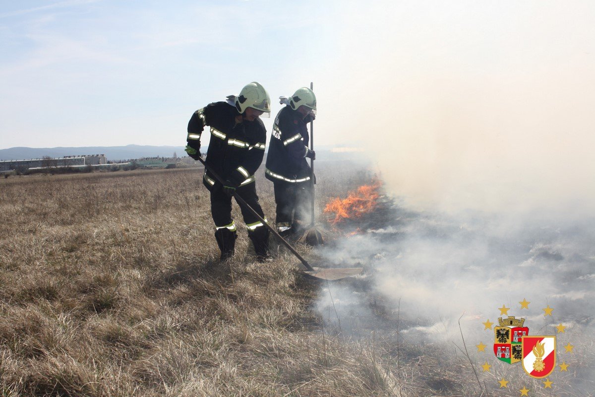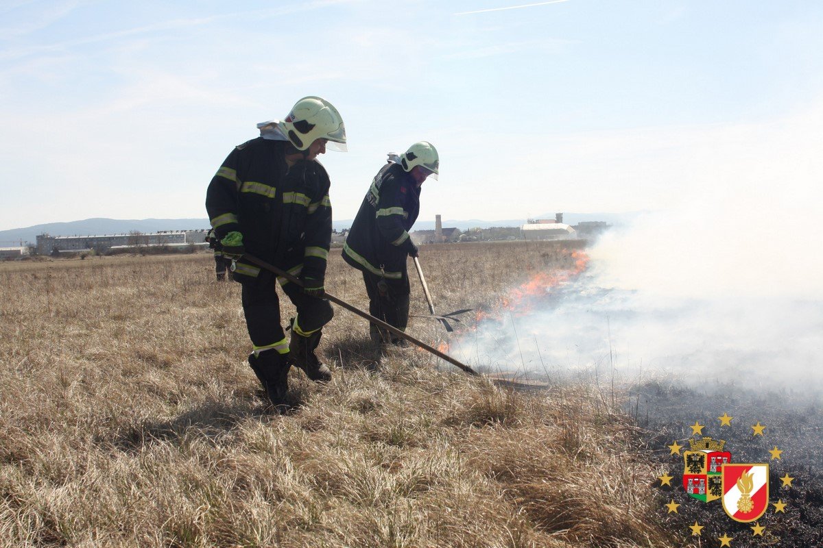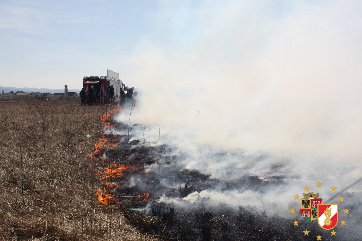 Teilweise unter schwerem Atemschutz wurde mit mehreren Rohren, Wasserwerfern und Feuerpatschen der Brand eingedämmt. Der starke Wind fachte nicht nur das Feuer immer wieder frisch an. Dieser trieb auch die Flammen in einer enormen Geschwindigkeit voran. Durch den raschen Einsatz der Feuerwehren am Nordende des Brandes wurde ein Übergreifen auf den nahen Föhrenwald verhindert. Der gemeinsame und koordinierte Einsatz der sieben Freiwilligen Feuerwehren und der Flugfeldfeuerwehr des Österreichischen Bundesheeres mit insgesamt elf Tanklöschfahrzeugen, zwei Großtanklöschfahrzeugen und zwei Flugfeldlöschfahrzeugen zeigte nach zwei Stunden Einsatz Wirkung.