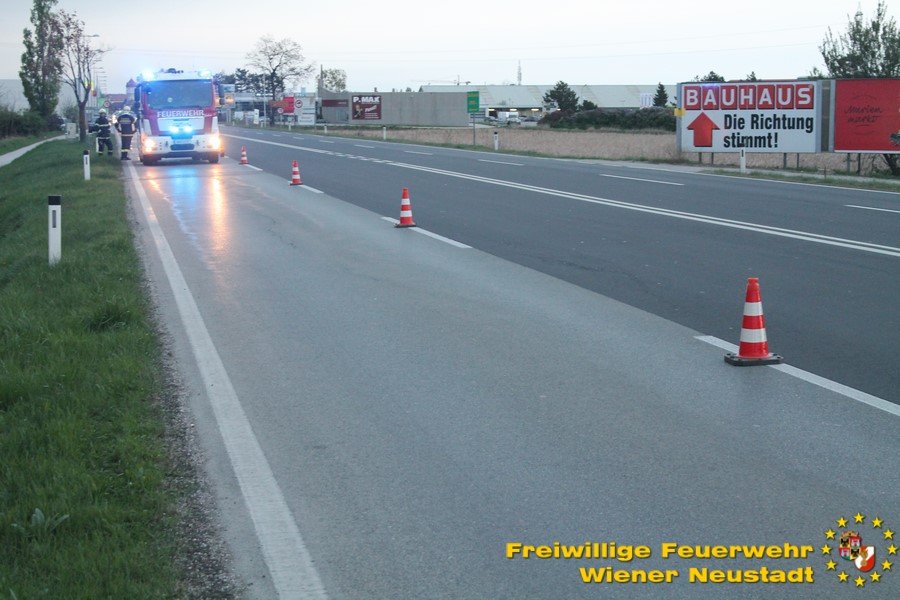 Zu einer Fahrzeugbergung rückte die FF Wiener Neustadt am Nachmittag des Ostermontags aus. Auf der B17 kam ein VW Golf stadtauswärts von der Fahrbahn ab und blieb auf dem Fahrradweg neben der Bundesstraße zum Stehen. Verletzt wurde niemand. Die Feuerwehr führte die Fahrzeugbergung durch.