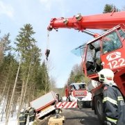 Die Feuerwehr Pernitz barg das Zugfahrzeug mittels Abschleppstange mit dem Tanklöschfahrzeug. Für den Anhänger wurde das Kranfahrzeug aus Wiener Neustadt angefordert.