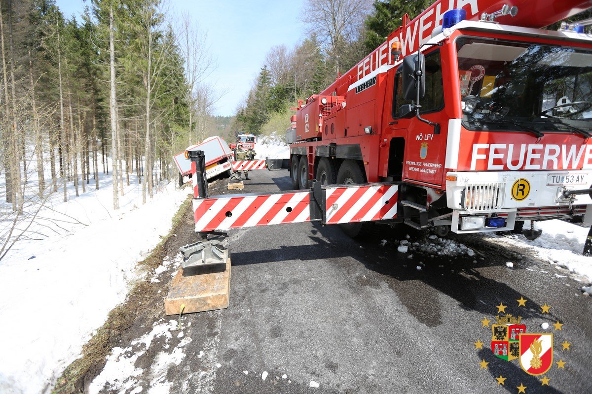 Durch die Schneefälle der letzten Tage war die Feuerwehr Pernitz vor allem am Hals oft im Einsatz. Mehrere Lkw und Pkw blieben hängen und mussten geborgen werden. Dutzende Einsätze führte die Feuerwehr Pernitz durch. Am 21. April 2017 allerdings war alleine kein Weiterkommen mehr. Die Feuerwehr Wiener Neustadt musste mit dem Kranfahrzeug aushelfen.
