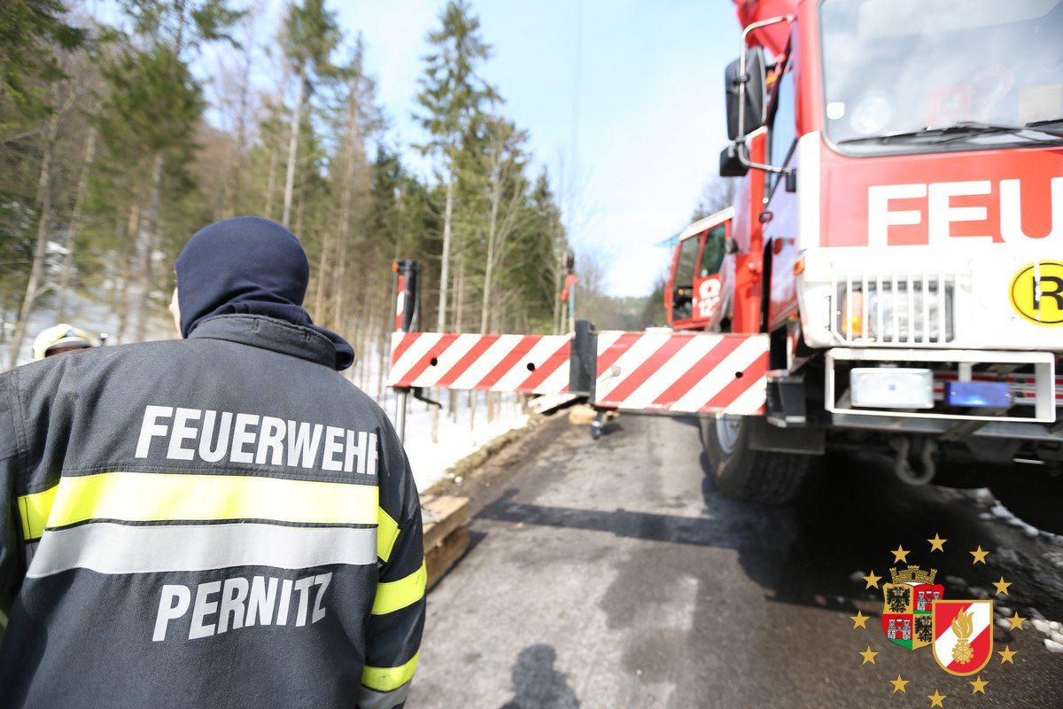 Die Feuerwehr Pernitz stand mit zehn Mann und drei Fahrzeugen, die Feuerwehr Wiener Neustadt mit 12 Mann und vier Fahrzeugen im Einsatz. Für die Dauer der Arbeiten war das Schärfthal beim Hals (die Verbindung zwischen Piestingtal und Triestingtal bei Pernitz) vollständig gesperrt.