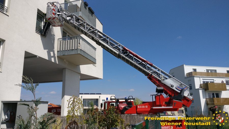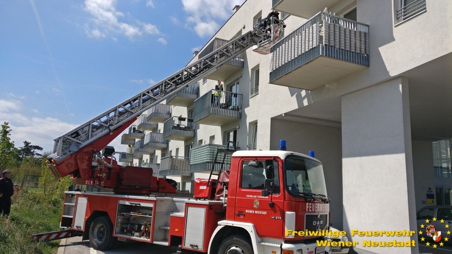 Am Balkon gefangen war eine junge Mutter heute Vormittag, 24.04., in Wiener Neustadt. Ihr kleiner Sohn (1 1/2 Jahre alt) sperrte die Frau am Balkon aus und legte sich seelenruhig zum Schlafen ins Wohnzimmer. Die Feuerwehr musste über ein Fenster im zweiten Stock in die Wohnung einsteigen, um die Frau zu befreien. Das Kind verschlief den ganzen Einsatz.