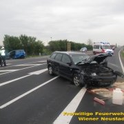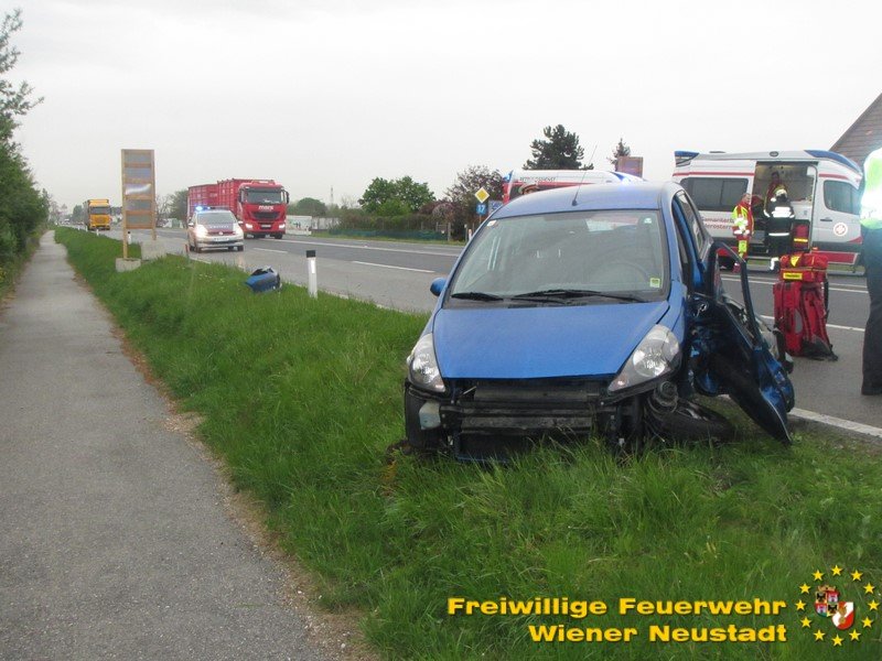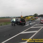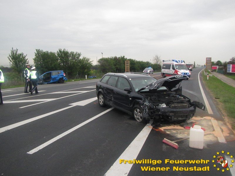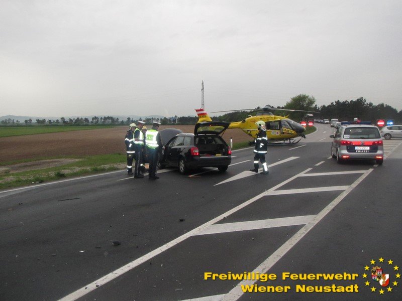 Drei Verletzte forderte ein Verkehrsunfall auf der B17 beim Autobahnknoten Wiener Neustadt. Eine Frau aus dem Bezirk Baden wurde im Fahrzeug eingeklemmt und musste nach der technischen Rettung mit dem Notarzthubschrauber ins Krankenhaus gebracht werden. Im anderen Fahrzeug wurden zwei Jugendliche, etwa 20 Jahre, unbestimmten Grades verletzt.