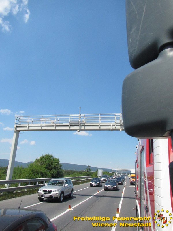 Im Baustellenbereich Richtung Graz, kurz vor der Ausfahrt Wiener Neustadt Süd, kam es zu einem Auffahrunfall zweier Pkws. Ein polnischer Pkw war daraufhin fahruntauglich und musste von der Fahrbahn verbracht werden.