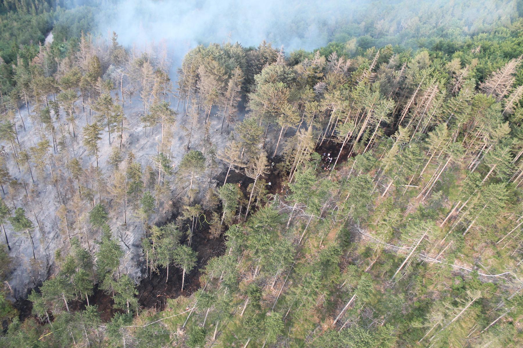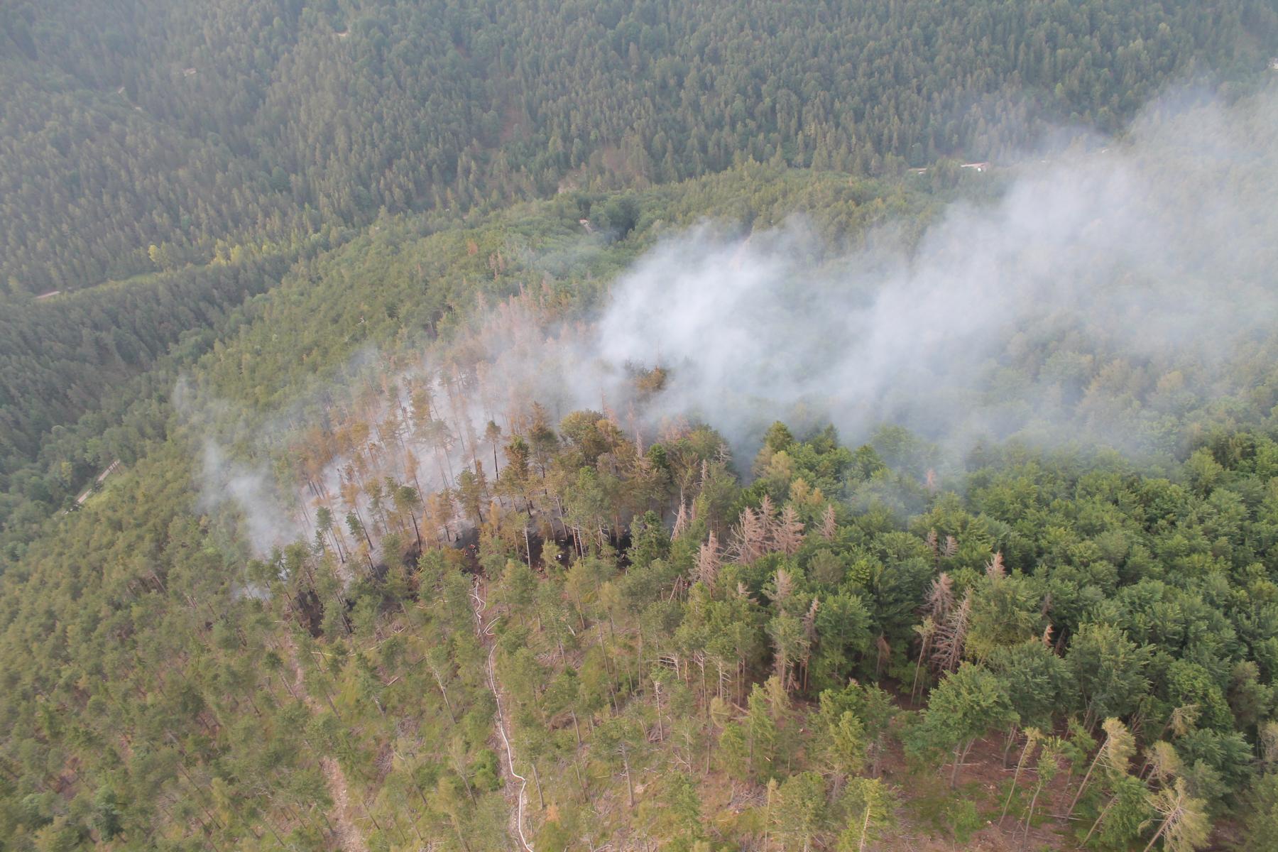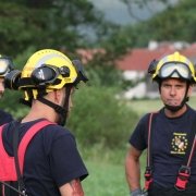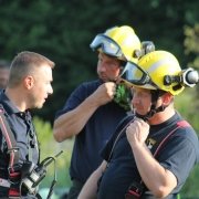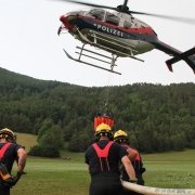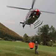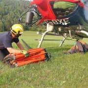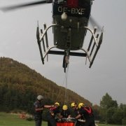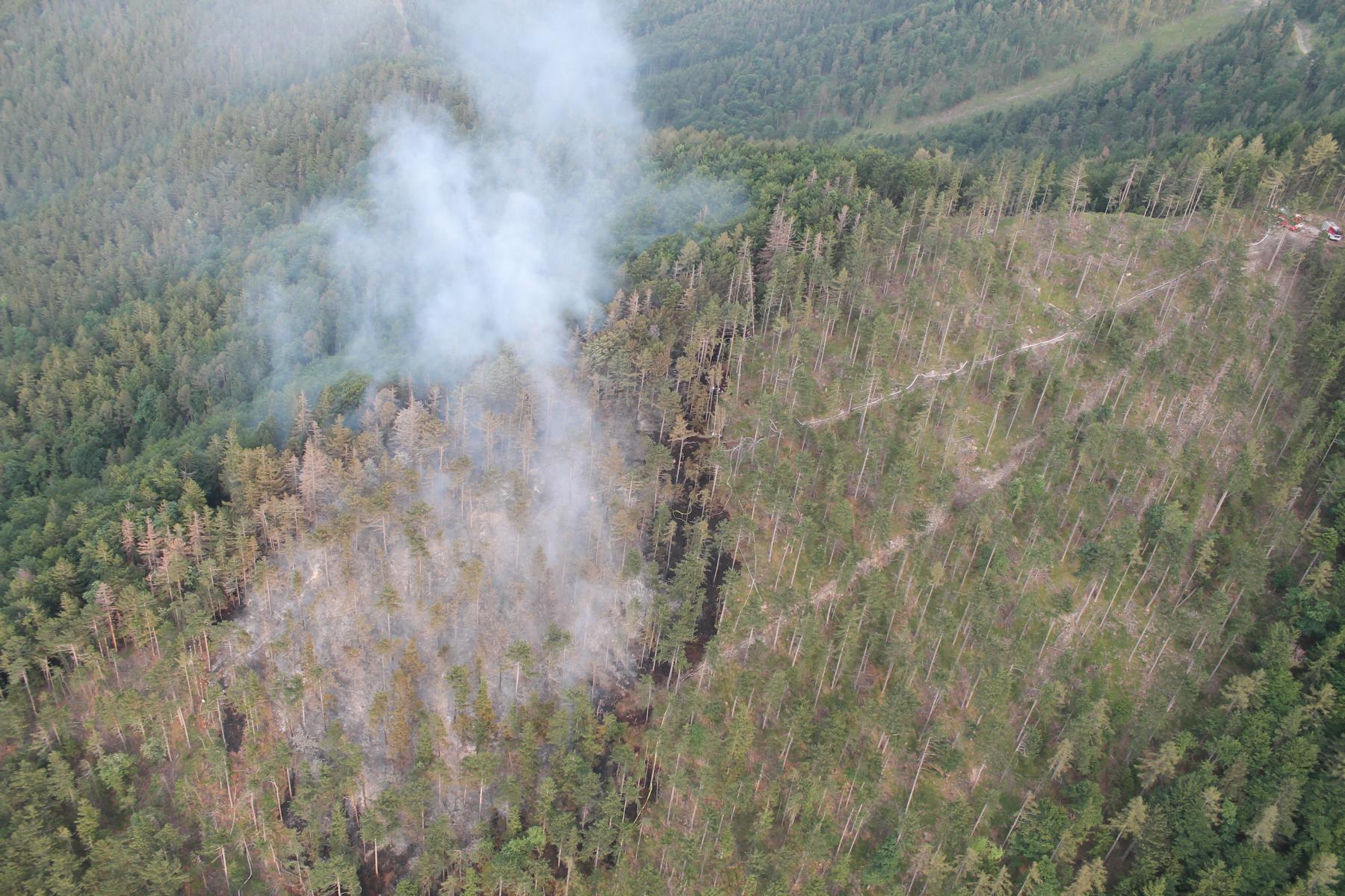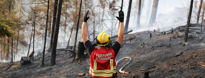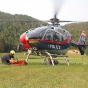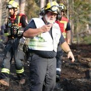 Sofort wurde mit dem örtlichen Feuerwehreinsatzleiter Kontakt aufgenommen. Flugdienst Gruppenkommandant Alfred Grimm fuhr mit zwei Flughelfern direkt in den Waldbrandbereich, während sein Stellvertreter Norbert Schmidtberger die Koordination am Landeplatz, einer Wiese neben dem Feuerwehrhaus Muggendorf, übernahm.