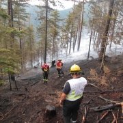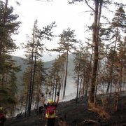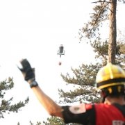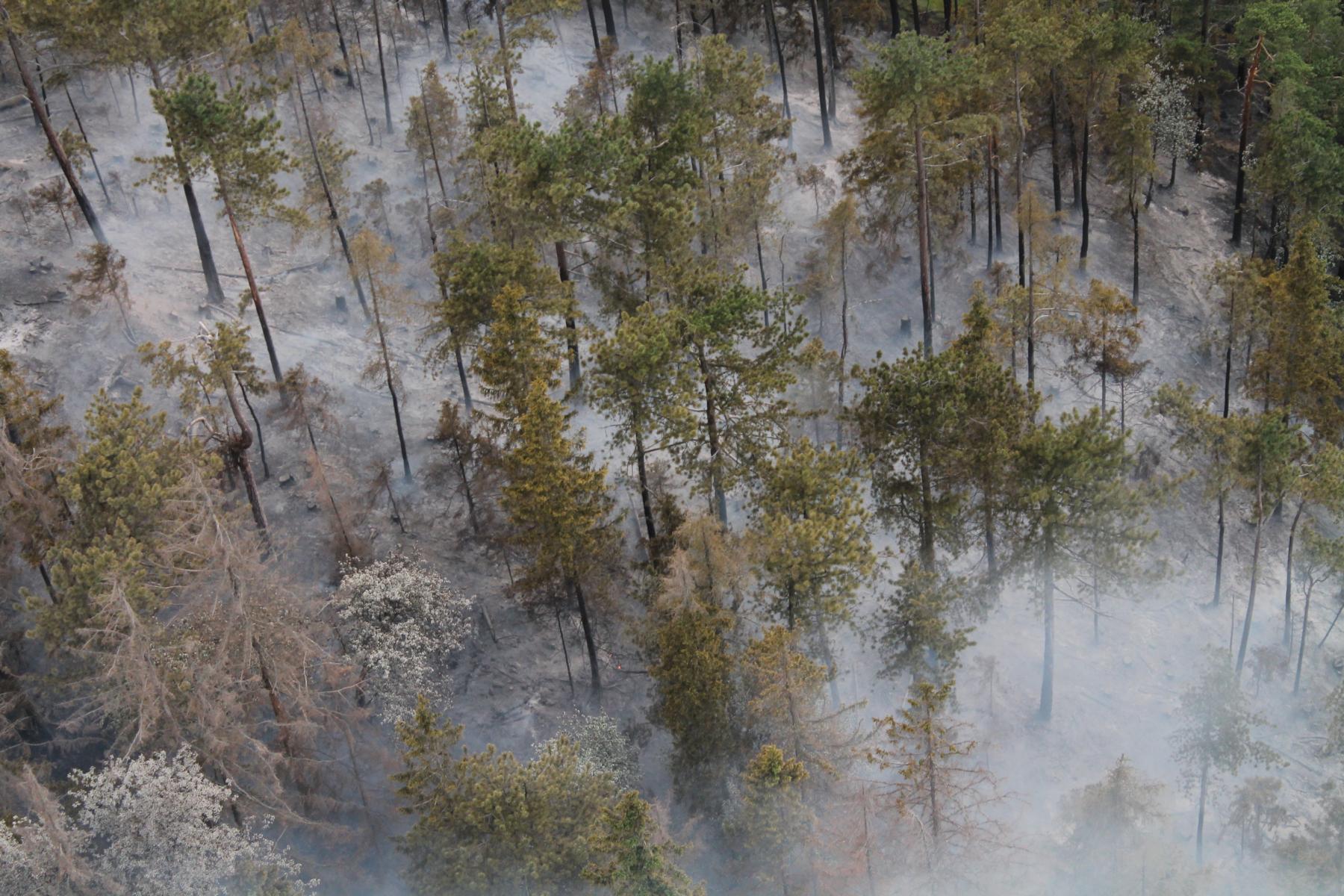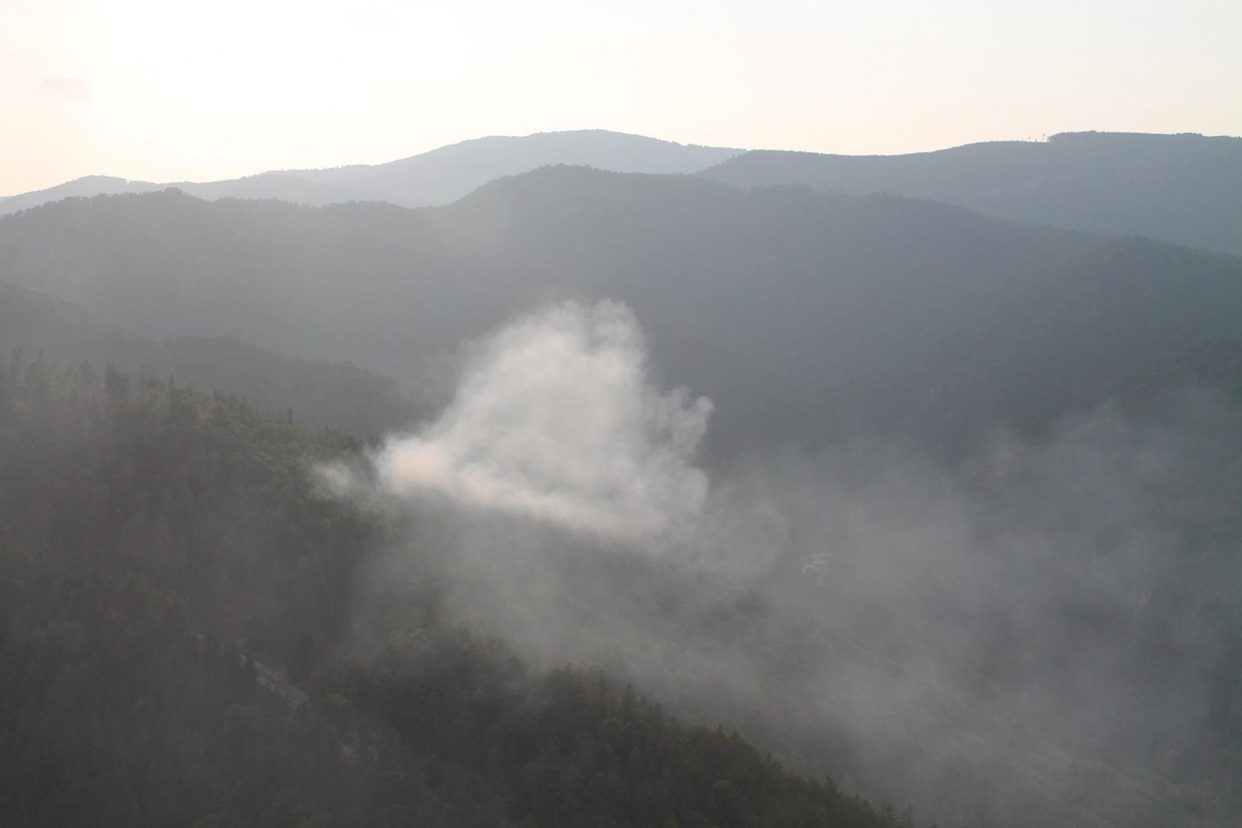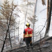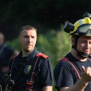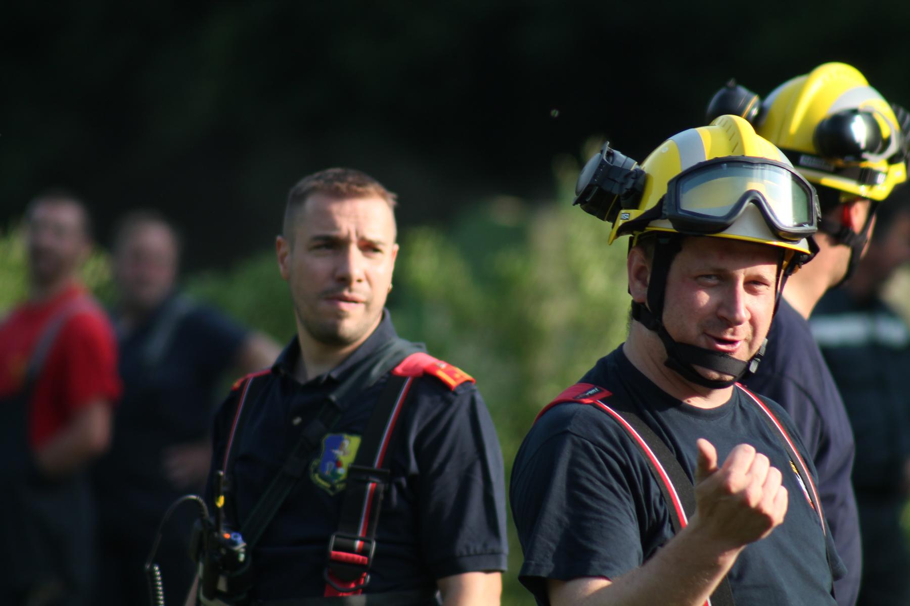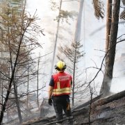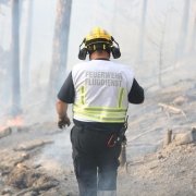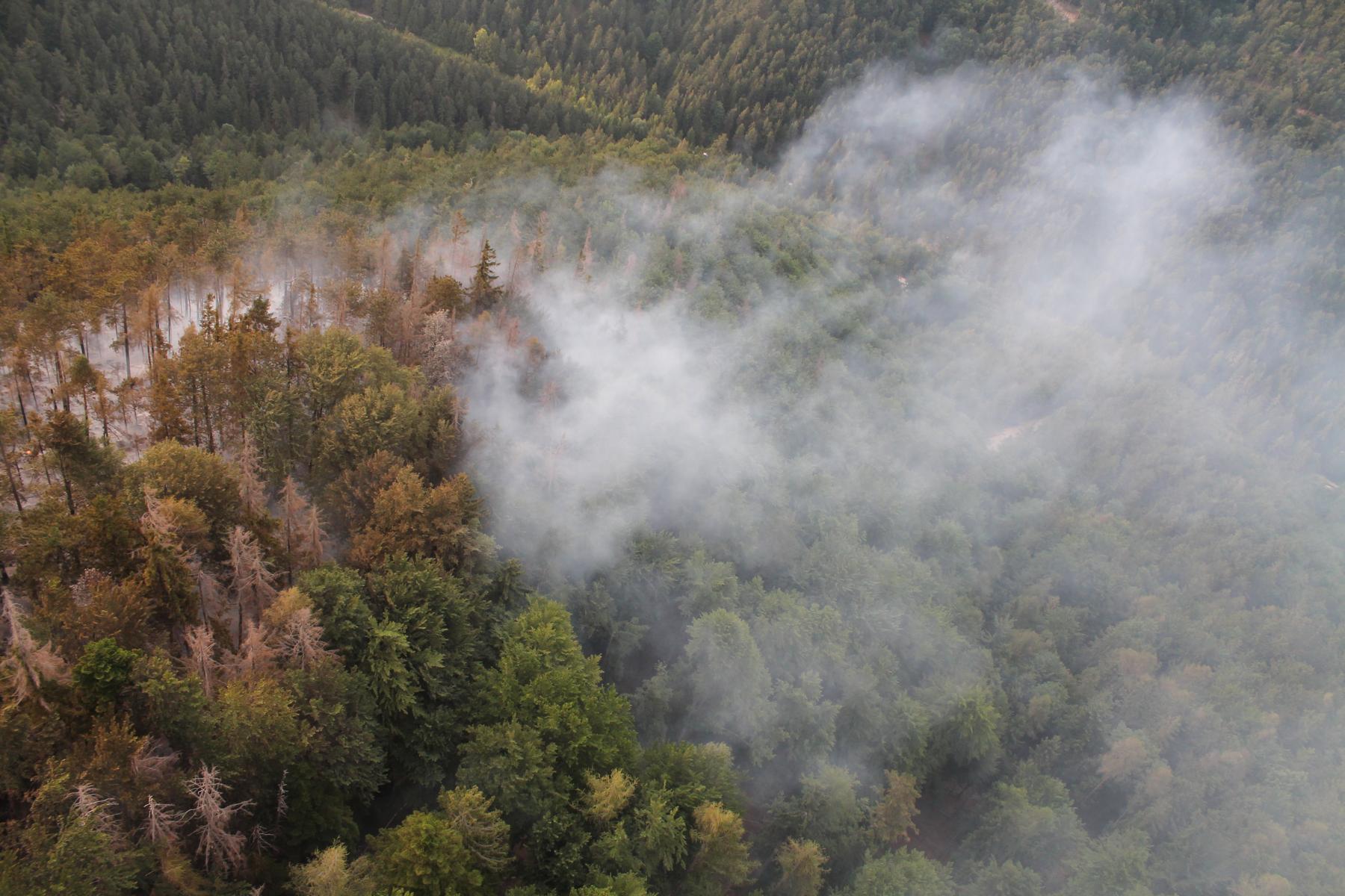 Sofort wurde mit dem örtlichen Feuerwehreinsatzleiter Kontakt aufgenommen. Flugdienst Gruppenkommandant Alfred Grimm fuhr mit zwei Flughelfern direkt in den Waldbrandbereich, während sein Stellvertreter Norbert Schmidtberger die Koordination am Landeplatz, einer Wiese neben dem Feuerwehrhaus Muggendorf, übernahm.